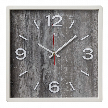 3028-009 (10) Часы настенные квадрат 30х30см, корпус белый "Структура дерева""Рубин"