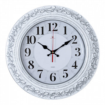 3524-006 (10) Часы настенные круг d=35 см, корпус белый с серебром "Классика" "Рубин"