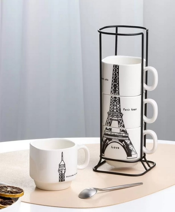 СП Набор кружек керамика, 4 шт, 200 мл, Эйфелева башня, Daniks, Y4-9700, металлическая подставка