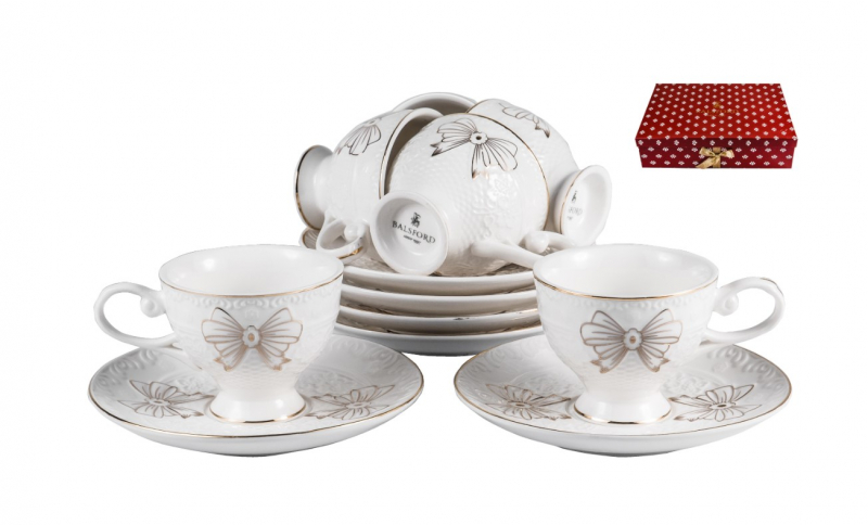 PSF ГРАЦИЯ, набор кофейный (12) 6 чашек 100мл + 6 блюдец, NEW BONE CHINA, подарочная упаковка