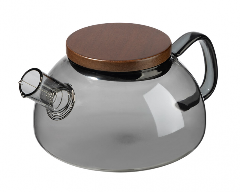 СКР Чайник заварочный из цветного стекла, Aroma di Fiore, объём: 600 мл с тёмной деревянной крышкой