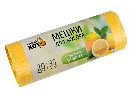СКР Мешки д/мусора "РЫЖИЙ КОТ" 35л (20шт./рул.) с ароматом лимона, желтые